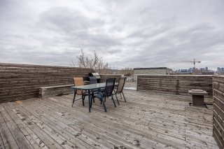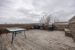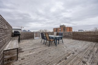 L'EXTÉRIEUR -- ESPACES APPRÉCIÉS : + Un grand rangement extérieur + 1 place de stationnement dans l'allée en asphalte + Terrasse sur le toit avec vue 360° sur la ville ET le Mont-Royal, avec BBQ (au gaz disponible) et offrant de magnifique coucher de soleil